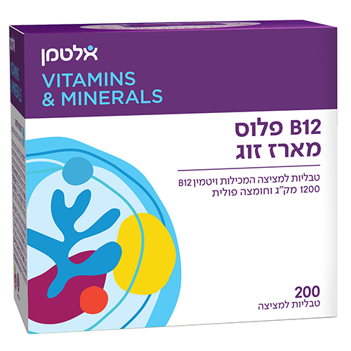 ויטמין B-12 פלוס,אריזת חיסכון - 200 טבליות למציצה, 1200 מקג, אלטמן