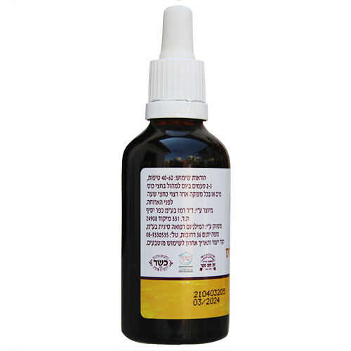 הוראות שימוש: 40-60 טיפות, 2-3 ביום. למהול בחצי כוס משקה. רצוי כחצי שעה לפני הארוחה.