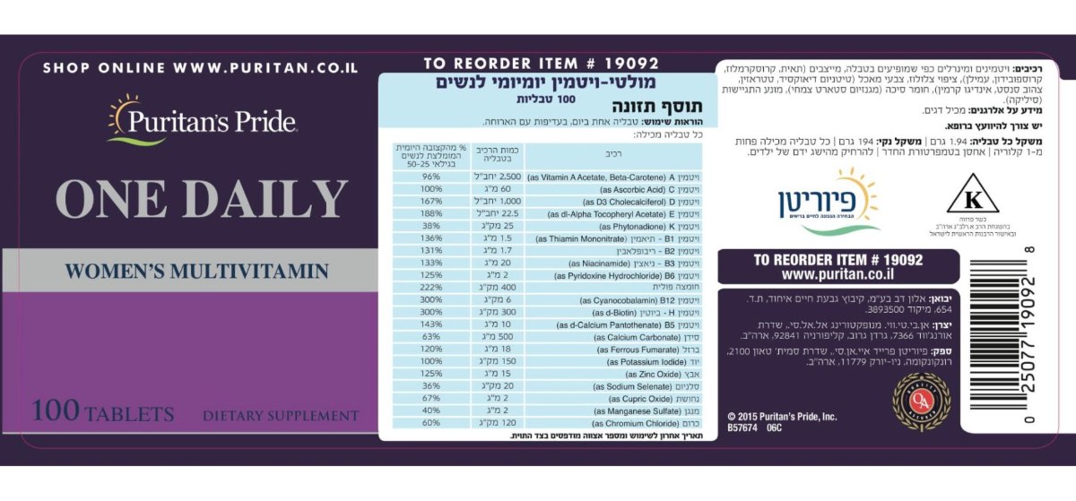 -- מולטי ויטמין יומיומי לנשים -- 100 קפליות