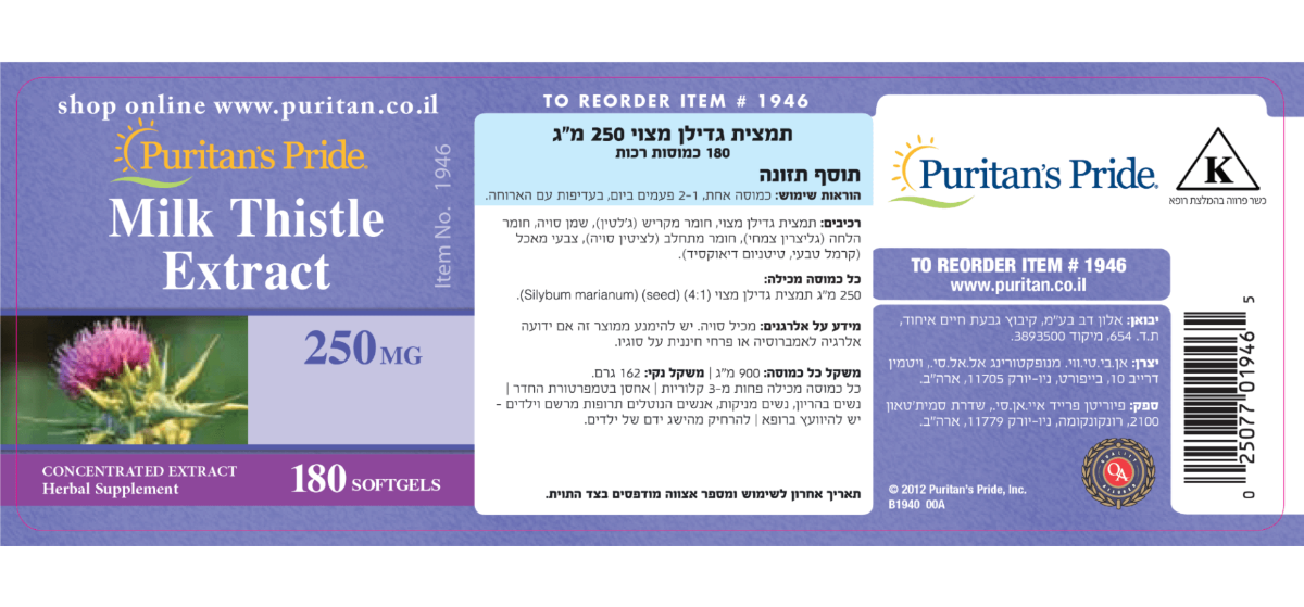 250 מ”ג תמצית גדילן מצוי (4:1) (Silybum marianum) (seed