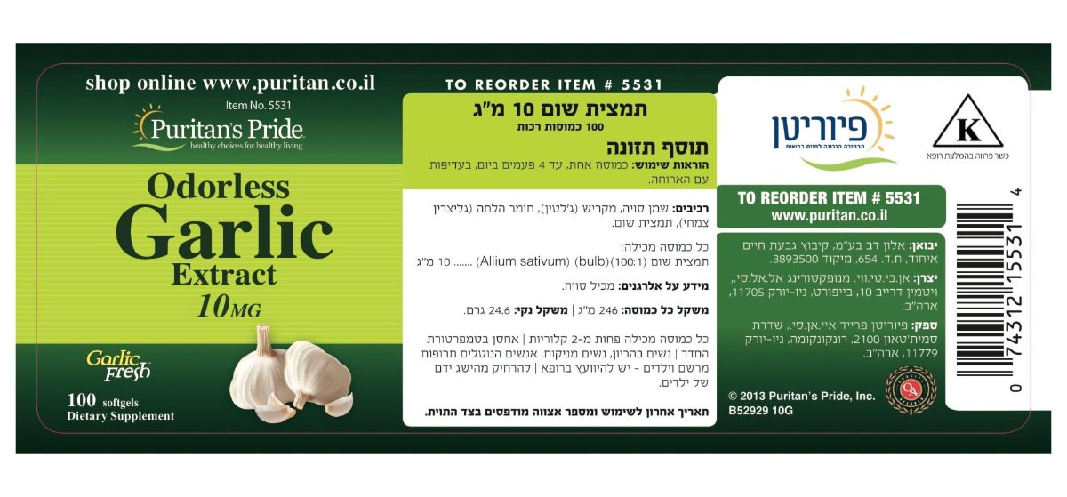 -- תמצית שום -- 10 מ"ג ן 100 כמוסות Puritan's Pride
